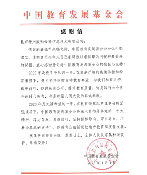 近期,evo视讯真人官网DCBOX小金库官网收到中国教育开展基金会的感谢信,以感谢evo视讯真人官网DCBOX小金库官网2022年在职业教育领域的贡献和实践,尤其是在全国职业院校大赛(中高职组)中对大赛顺利召开所付出的努力。